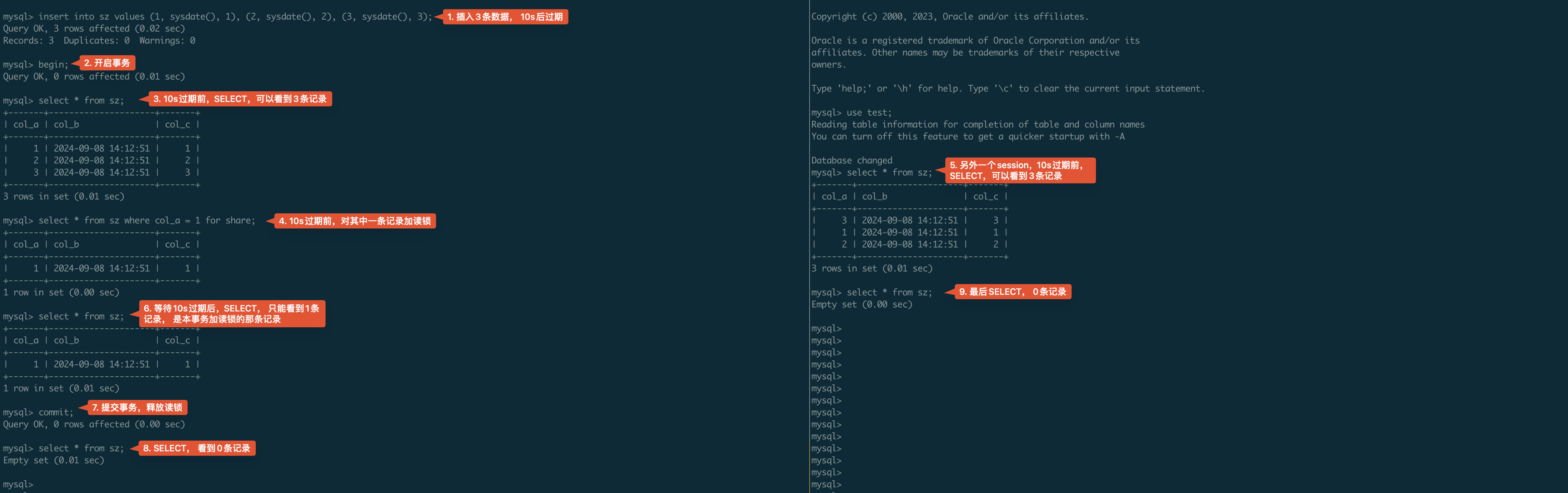 - Locking Read:在一个事务中,对于同一条记录,只有首次加锁需要判断TTL过期,如果过期这当做记录不存在。如果未过期则加锁成功。在接下来的操作中,如果再次读取同一条记录,该条记录总是对其可见。