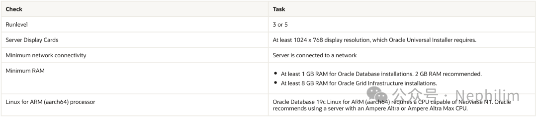 一、Server Hardware Checklist for Oracle Database Installation