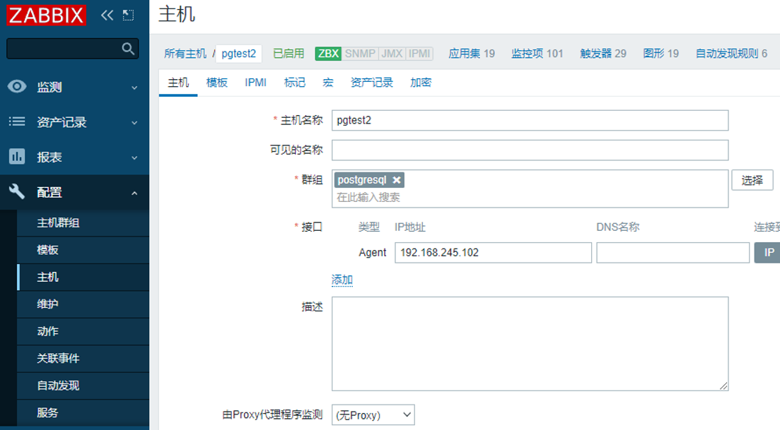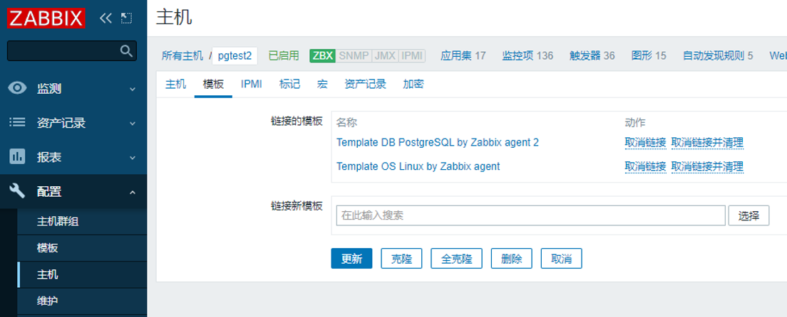 页面中增加主机,增加postgresql相关的监控模板,并修改相关宏参数即可