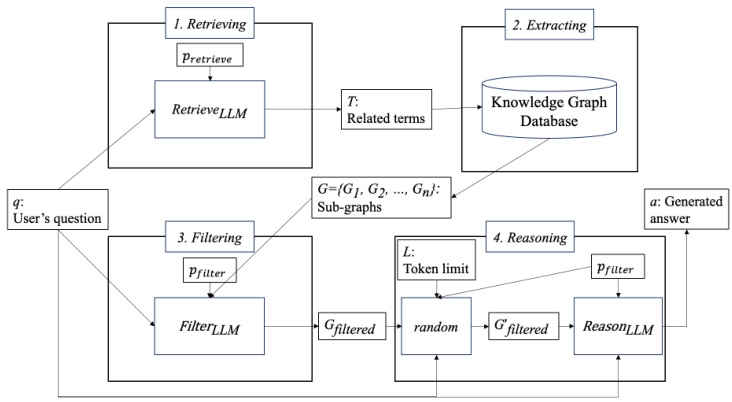 输入: 过滤后的子图集合 、用户查询 和推理提示 。 输出: 最终答案 。 过程: 如果子图数量超过提示 token 限制 ,则随机删除部分子图。 LLM 使用推理函数 生成最终答案,结合用户查询和过滤后的子图信息。例如,LLM 可能会分析发动机、火花塞和燃油喷射器之间的关系,并推断出火花塞故障可能导致发动机故障。