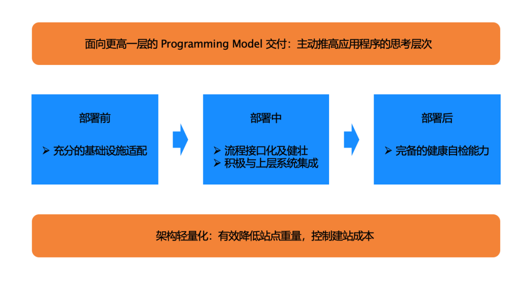 轻量交付首先离不开数据库产品的管控成熟度。数据库服务依赖的硬件设施需要能够适配企业当前普适的硬件形态,例如硬件设施经历了从物理机形态到虚拟机形态的演进,再到当前的容器形态,数据库产品需要积极去适配,积极适配当前企业普适的硬件形态能够有效降低交付前置事项对人肉的依赖;服务搭建流程需要能够接口化且具备原子动作的可重入能力和回滚能力,这对管控平台的成熟度提出了要求,从而能够被上层系统所集成,能够最大限度的规范化、自动化,并最终无人化;数据库服务需要具有完备的健康自检能力,完整覆盖服务自身的所有组件与接口,及依赖的第三方服务,从而保证交付质量。