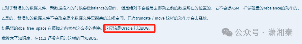 后续又和oracle support 系统梳理了问题时间的ASH的sql记录,考虑到被insert extend的blocks即使rollback 也不会被释放,也没有查询到类似有CTAS(create table as)等异常操作