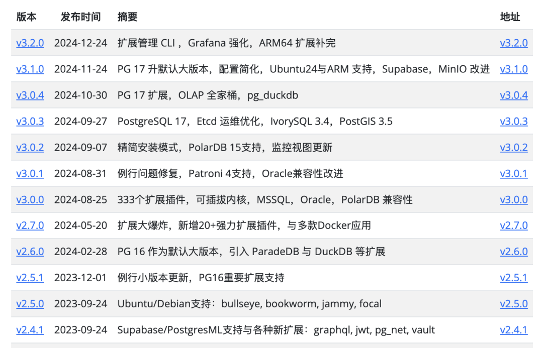 在 2024 年,Pigsty 发布了 9 个版本,特别是 v3 的发布,基本标志着这个项目已经进入了非常成熟稳定的阶段。