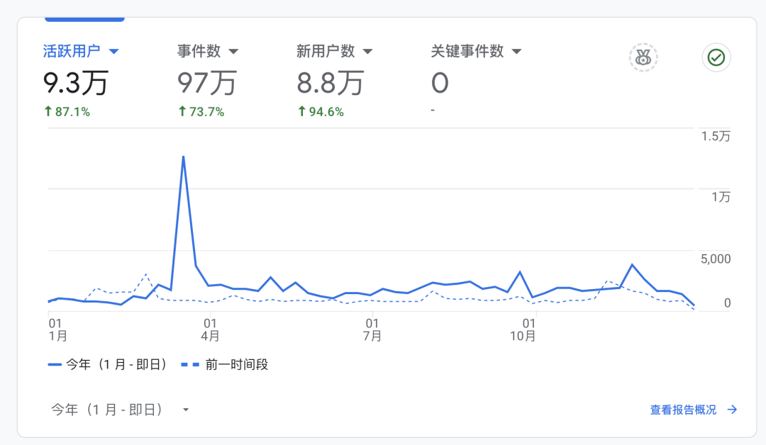 从 Google Analytics 上来看,今年 Pigsty 网站的总访问用户达到 10 万+ (pigsty.cc 加 pigsty.io ) ,相比去年的 5 万 UV 翻倍。
