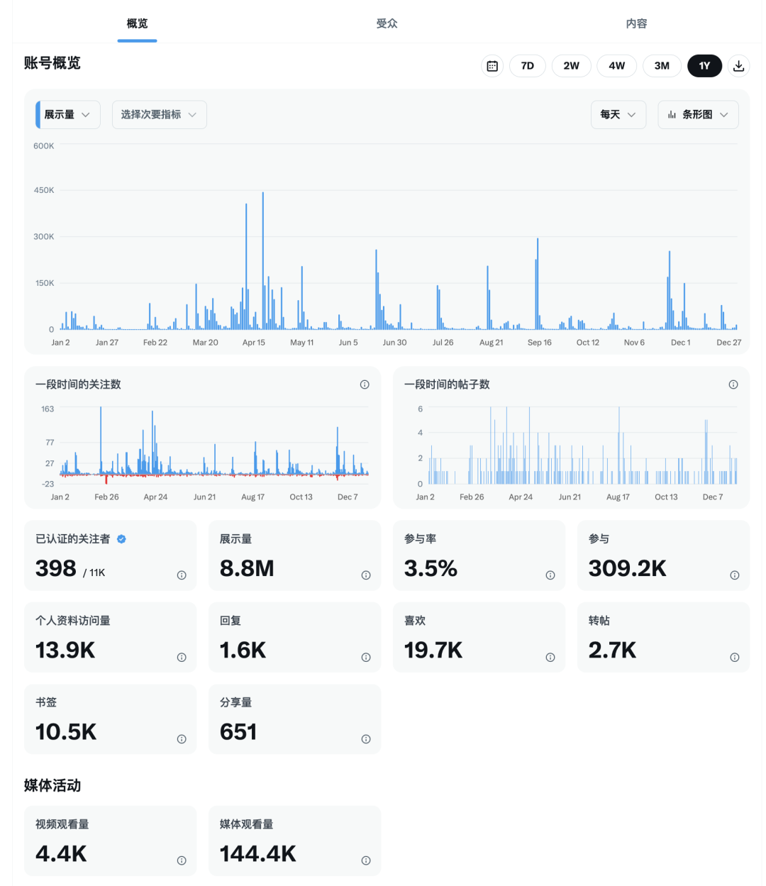总的来说,搞的还不错,海外平台上 Medium 有了几百个订阅,X 上关注破了一万一,接近千万展现,佛系运营,也算还行吧。