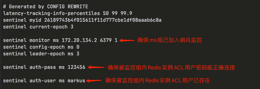 检查哨兵配置文件 sentinel.conf