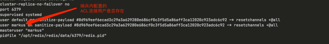 在本次实验的版本 Redis 7.4.0 上,创建用户后默认的 Channel 权限被重置为了 resetchannels,哨兵无法通过订阅 channel 来获取主从实例的状态信息从而导致了该现象的产生。