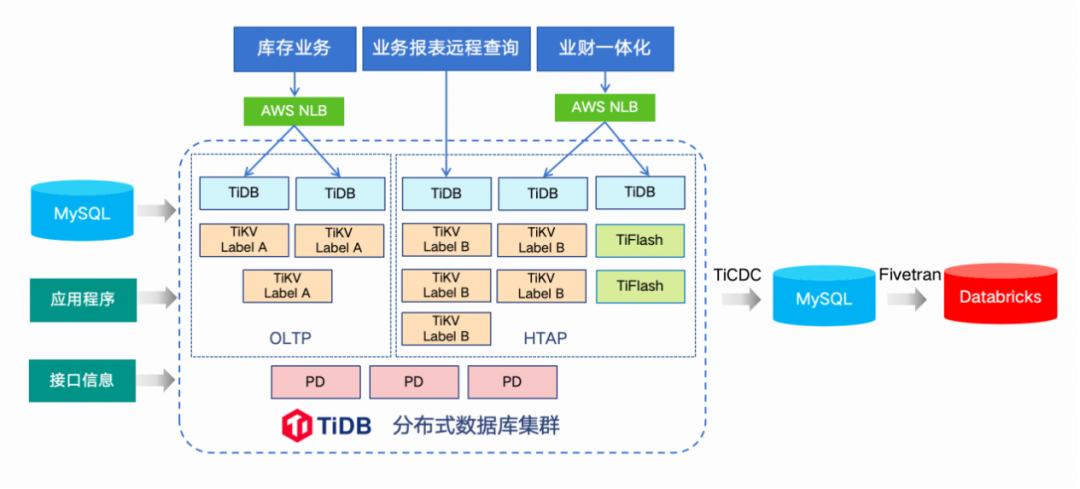 对接数据湖生态:部分经过 TiDB 加工处理的数据需要实时同步到数据湖平台,通过 TiCDC 同步工具,TiDB 能够将变更数据实时同步到数据湖。当时由于环境限制,TiCDC 暂时无法直接写入 Databricks,采用了 MySQL 作为中间跳转的方案。与此同时,TiDB 也提供了 TiDB to Databricks 的同步工具:tidb2dw ( https://www.pingcap.com/blog/tidb2dw-replicate-data-to-warehouses/ ) 给该企业使用,以逐步实现 TiDB 到数据湖生态的直接对接,并以此场景为契机,不断反向推动 tidb2dw 工具功能和能力。