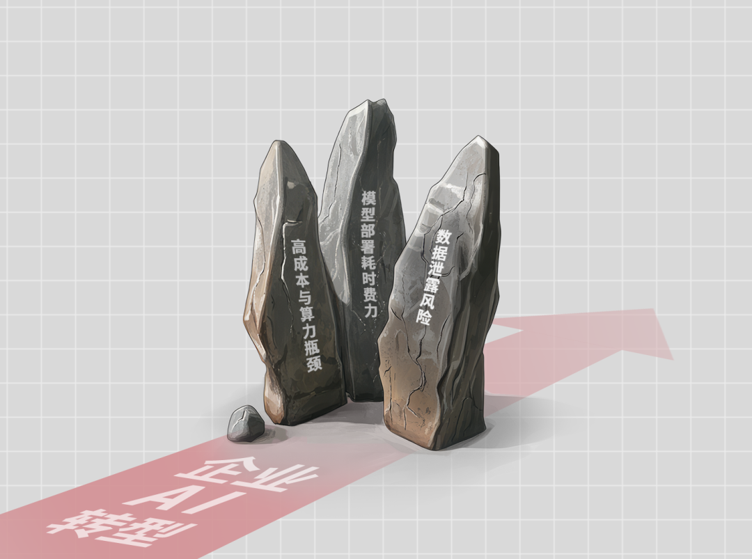 数据经济时代,企业对数据私密性要求极高,面临数据传输、存储、使用等环节的泄露风险,尤其在涉及核心业务数据和客户隐私信息时,大量企业畏惧数据泄露恶果,不敢贸然推进AI转型。