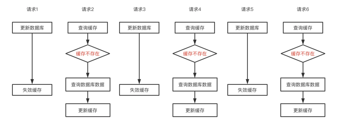 deleteRedis(key);//先删除缓存让缓存失效updateMySQL();//再更新数据库