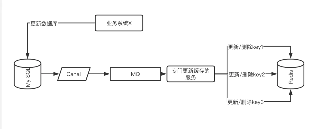利用 Canel 订阅数据库 binlog 变更从而发出 MQ 消息,让一个专门消费者服务维护所有相关 Key 的缓存操作