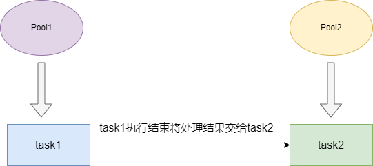 public static void main(String[] args) throws ExecutionException, InterruptedException {ExecutorService executorService = Executors.newFixedThreadPool(5);CompletableFuture<Integer> task1 = CompletableFuture.supplyAsync(() -> {System.out.println(Thread.currentThread() + "开始工作了");try {Thread.sleep(2000);} catch (InterruptedException e) {e.printStackTrace();}System.out.println(Thread.currentThread() + "结束工作了");return 100;}, executorService);将两个任务组合起来CompletableFuture<String> task2 = task1.thenApply((data) -> {System.out.println("第二个线程:" + Thread.currentThread() + "开始工作了");try {Thread.sleep(2000);} catch (InterruptedException e) {e.printStackTrace();}return "第一个线程的结果为 " + data;});System.out.println("获取组合任务结果");System.out.println("组合任务处理结果为: " + task2.get());System.out.println("获取组合任务结果结束");executorService.shutdown();while (executorService.isTerminated()) {}}