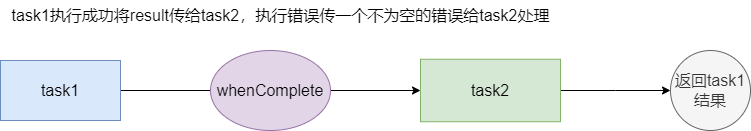 所以上一个例子的代码我们可以简化成这样,需要注意的是whenComplete返回结果是上一个任务的执行结果,我们无法返回任务2的执行结果。