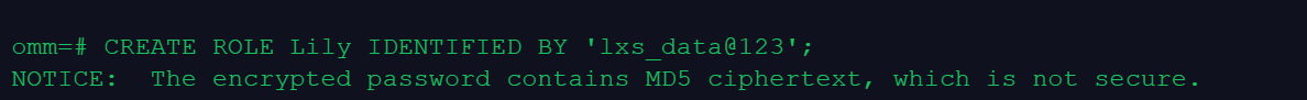 omm=# CREATE ROLE Lily IDENTIFIED BY 'lxs_data@123';