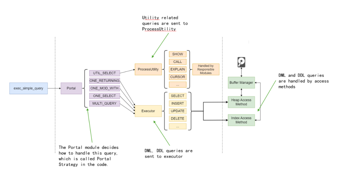 函数开始的。除非你使用游标或扩展查询协议,否则你通过 psql 发出的绝大多数查询都是从这里开始的。