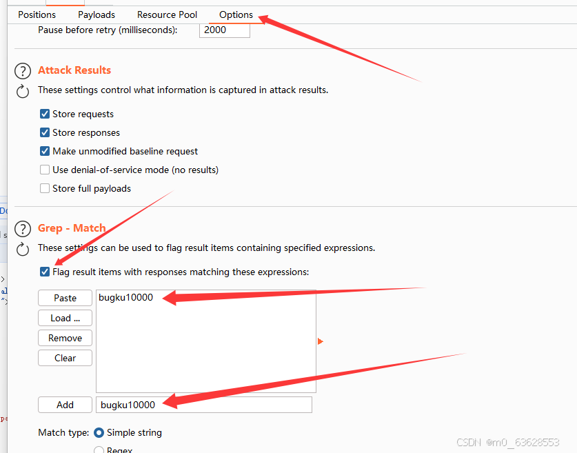 首先找到这个code,这个能帮助我们获得关键信息,后续也需要这个来显示爆破的状态,1表示成功,2表示失败。右键数据包把它放入爆破选项中去。