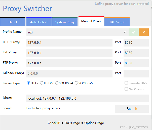 首先得使用Proxy这个插件,切换到HTTP模式,端口改为8080,地址全是本地地址127.0.0.1。