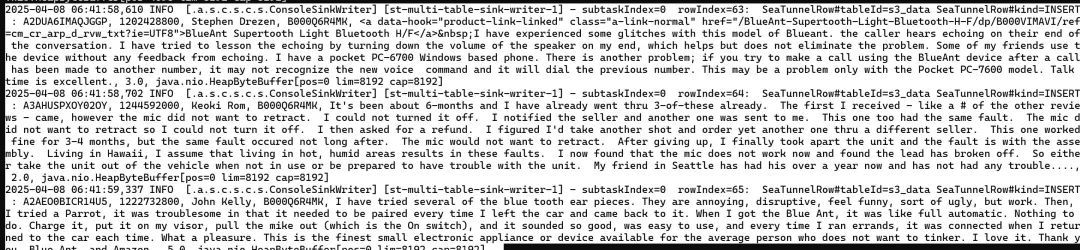 query = "SELECT Item.review_id.S as review_id, Item.date.S as date, Item.customer.S as customer, Item.asin.S as asin, Item.review.S as review, Item.rating.S as rating FROM s3_data"