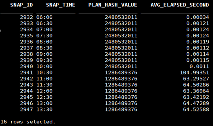 用户反馈数据库变慢,AWR定位相关SQL在10:30的快照中执行计划发生了变化。