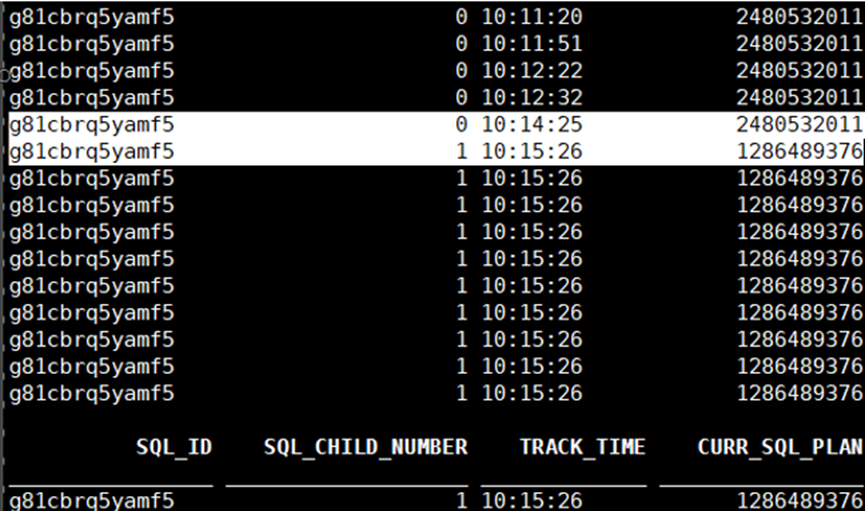 ASH进一步追踪到执行计划在10:15分钟的时候发生了变化。