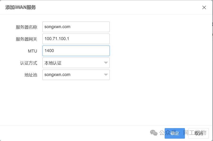 需要填写服务器名称、 服务器网关、MTU、认证方式、地址池选择上面添加的。
