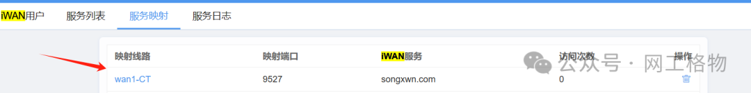 映射线路选择公网口,映射端口任意,服务选择上面创建的服务。然后点击添加