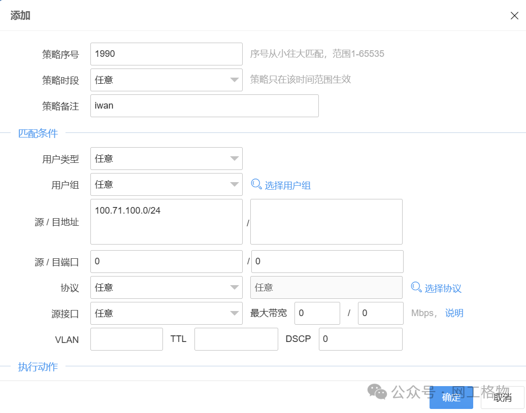 • 指定源地址为 iWAN的地址范围进行匹配 • 执行动作为NAT,选择NAT线路和下一跳