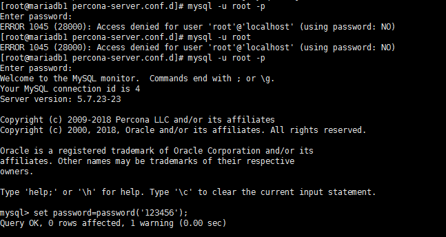 | percona1 | 10.0.0.130 | percona 5.7.23 |
