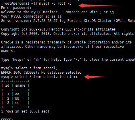| percona2 | 10.0.0.131 | percona 5.7.23 |