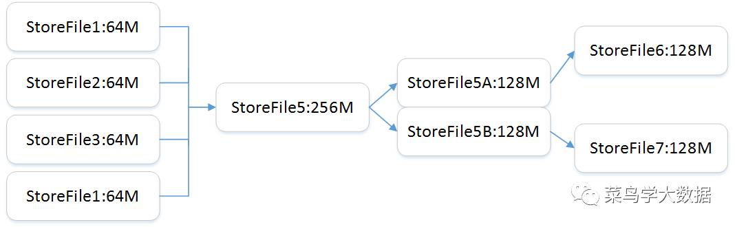 如上图:随着StoreFile文件数量的不断增加,当达到事先设定的数量时,就会触发文件合并操作,多个StoreFile文件会被合并成一个大的StoreFile文件。当多个StoreFile文件合并后,会逐步形成越来越大的StoreFile文件,当单个StoreFile文件大小超过一定阈值时,就会触发文件分裂操作。同时,当前的一个父Region会被分裂成两个子Region,父Region会下线,新分裂出的2个子Region会被Master分配到相应的Region服务器上。