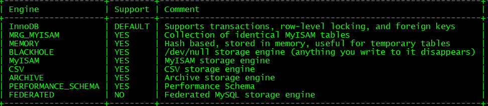 show engines:查看所有的数据库引擎