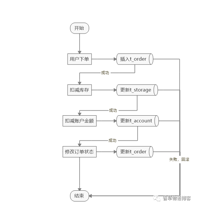 其实业务很简单,用户下单,扣减商品库存表数据然后减去账户余额,如果不是微服务架构,我们一般使用一个系统,基本上一个@Transactional