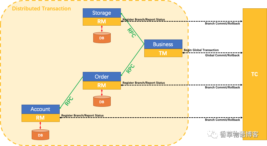 注解就解决了。基于微服务就不同了,我们提供三个微服务,分别为订单服务、库存服务、账户服务,三个服务对应三个数据库,分别为seata_order、seata_storage、seata_account,现在不同业务分布在不同的数据库中,那么我们在进行数据回滚就不太好处理了。