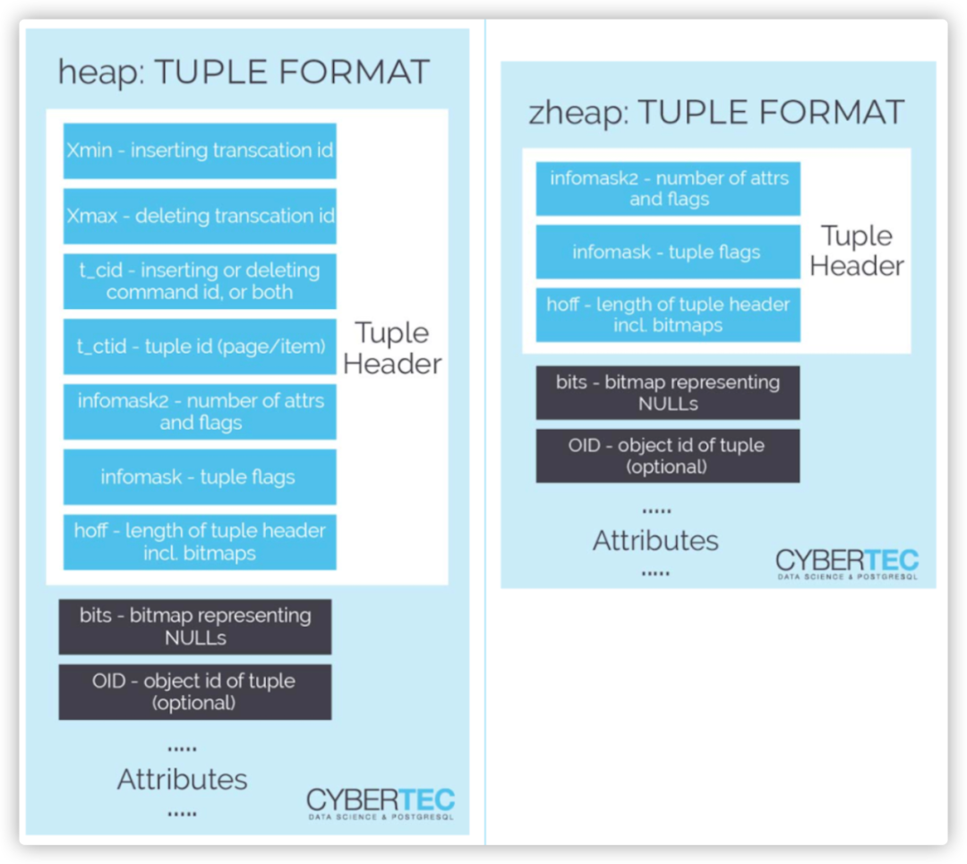 PostgreSQL中每个普通的heap表中每行数据也存储一些信息,在MVCC实现中根据规则来选择事务应该读取哪一行数据。我们接下来了解下PG中每行数据的header,它是用