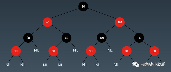 性质1. 节点是红色或黑色。 性质2. 根节点是黑色。 性质3 每个红色节点的两个子节点都是黑色。(从每个叶子到根的所有路径上不能有两个连续的红色节点) 性质4. 从任一节点到其每个叶子的所有路径都包含相同数目的黑色节点。
