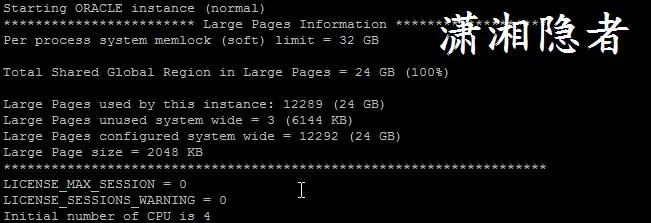 设置后保存后,切换到oracle用户下,重启Oracle实例,你会看到告警日志的提示信息正常了。Oracle SGA也开始使用标准大页的页面内存了。问题解决了。