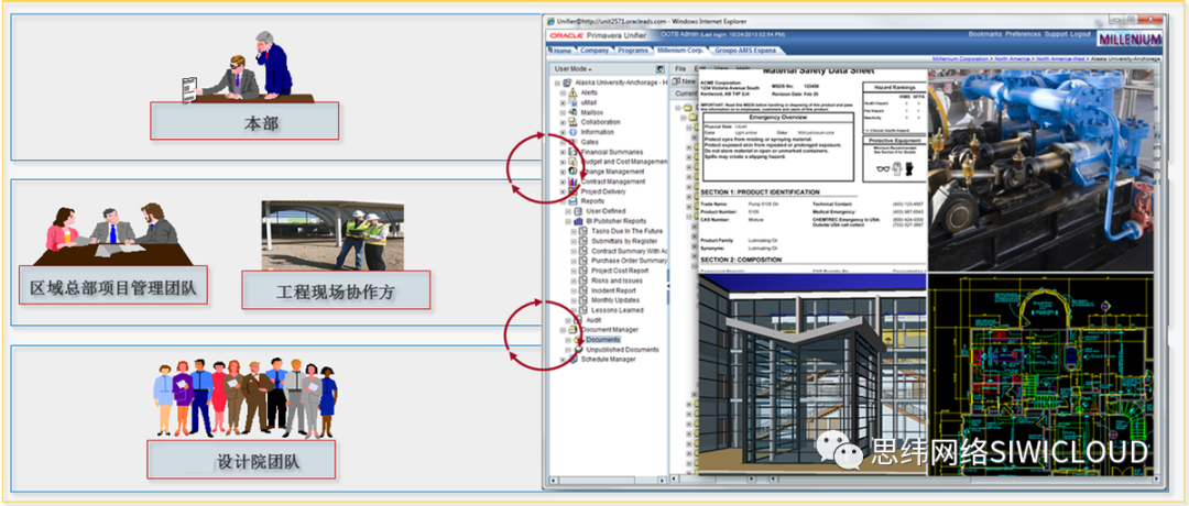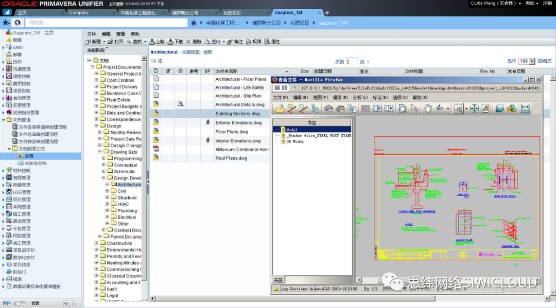 国内外工程项目空间、时区跨度大,这对提高国内外协同工作,尤其是大量工程技术文件(如图纸、三维模型)的协同工作效率提出了巨大的挑战。本系统支持管理与业务数据的无缝衔接,如在线进行三维模型的审查、图纸的会审会签以及施工图纸的查看等。