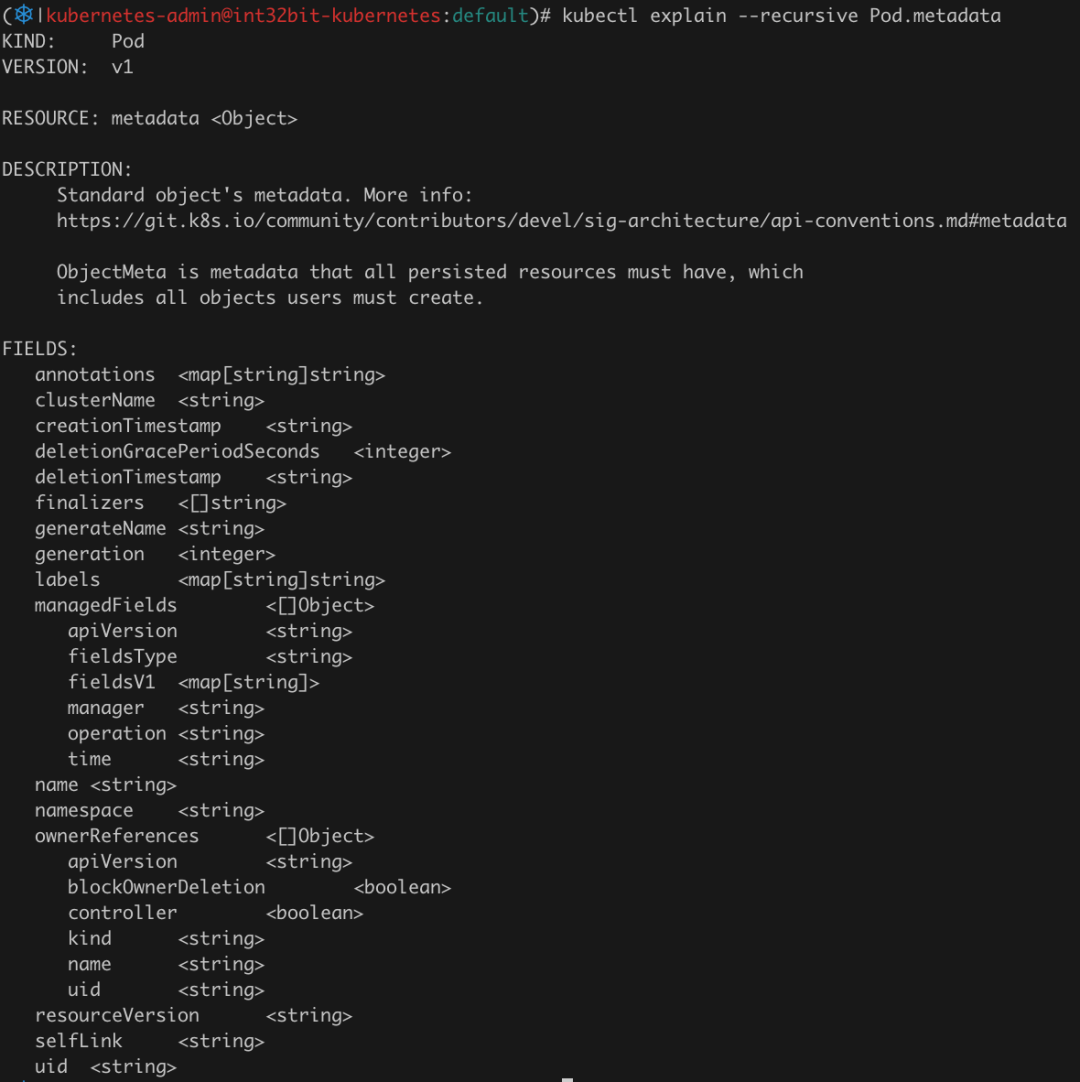 递归式列出所有参数,比如忘记了Pod的metadata怎么定义: