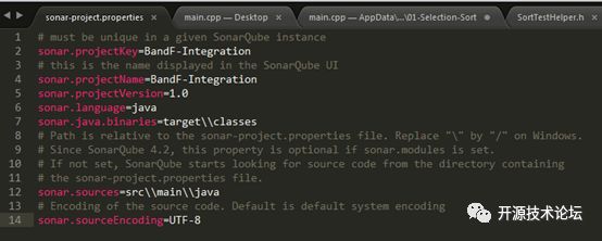 ④打开要进行代码分析项目根目录,新建sonar-project.properties文件,输入以下信息