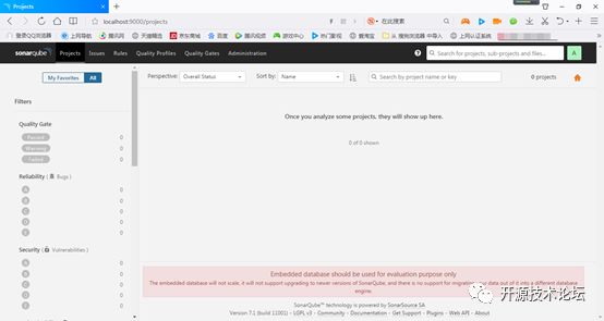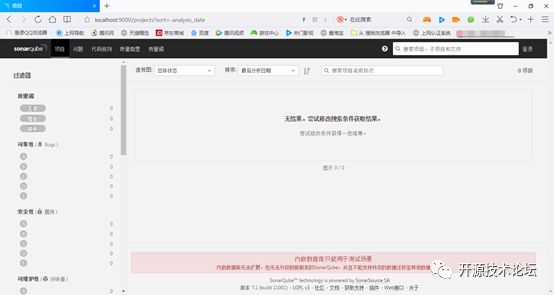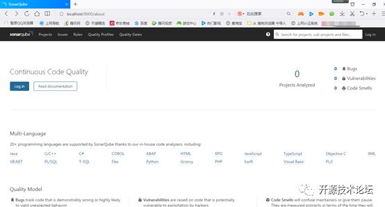 安装成功后,重启sonarqube服务,再次访问http://localhost:9000/,即可看到中文界面