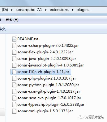 下载sonar-l10n-zh-plugin-1.21.jar完成后放在扩展文件夹中