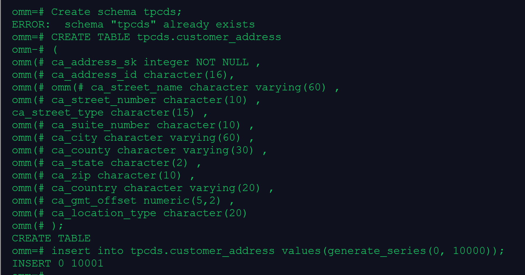 CREATE TABLE tpcds.customer_address