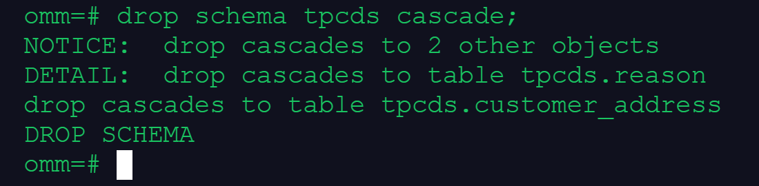 drop schema tpcds cascade;