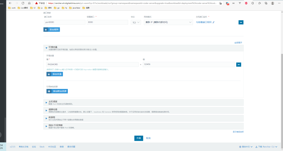 设置环境变量,设置 PASSWORD 环境变量,即为 pod 应用的启动访问密码。