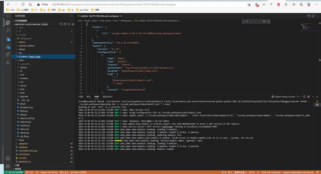 通过 VScode 配置好启动文件,启动 Odoo 服务,即可断点调试开发项目