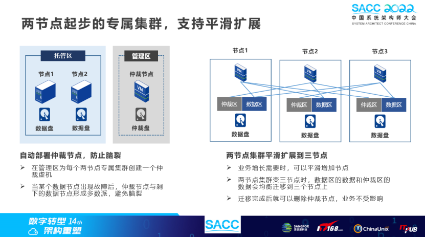 在成本方面,中小企业希望在建设云基础设施的过程中,前期的投入要低。因此,信服云一般建议中小企业在云化的起步阶段,选择托管云的方案。一方面,托管云的起步门槛较低,对于业务不复杂的中小企业而言,两到三节点的专属集群即可承担起初步承载业务的任务。另一方面,在日后业务增长需要更多云资源的时候,专属集群还可以平滑增加节点,而且数据可以均衡地迁移到新增节点上,业务不会受到影响。