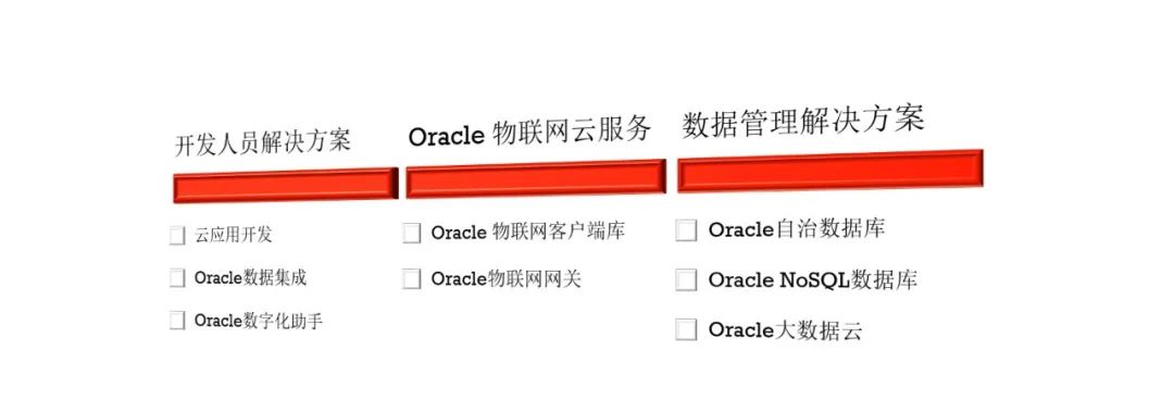 Oracle匹配新基建的工业互联网建设的方案,包含Oracle物联网应用、Oracle物联网平台、Oracle物联网生态系统三大部分。是一整套非常丰富的Oracle物联网解决方案,有面向终端和远程资产的物联网应用,亦有针对开发人员的云应用开发、数据集成,数字化助手,数据科学云等平台方案,也有针对设备的物联网客户端库、网关软件等等服务。