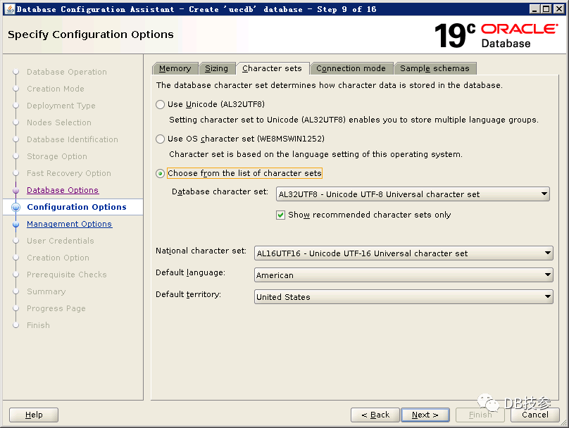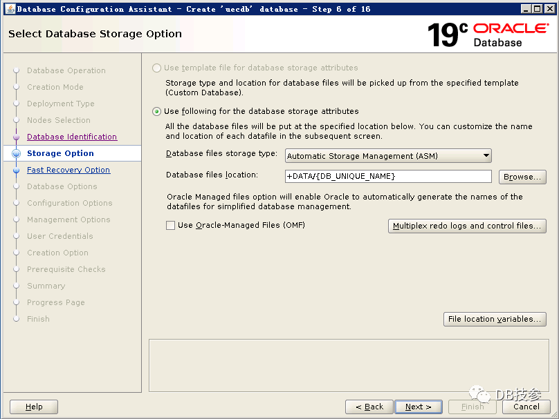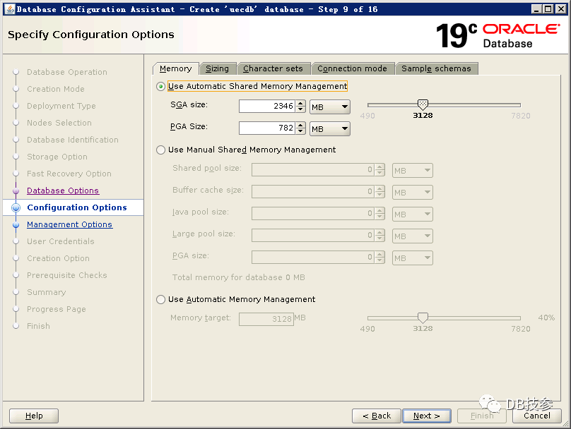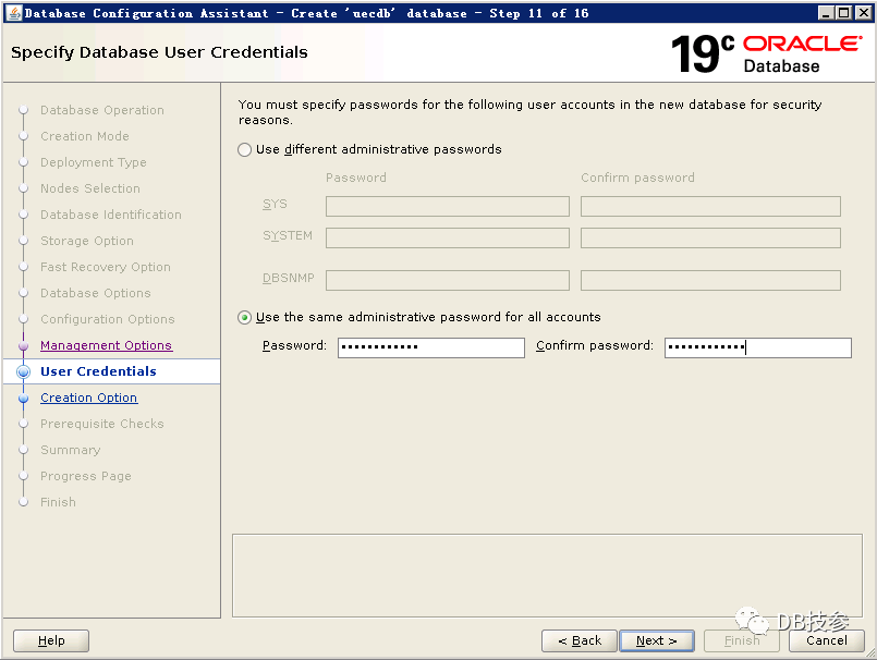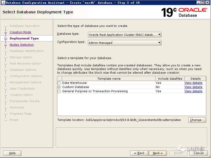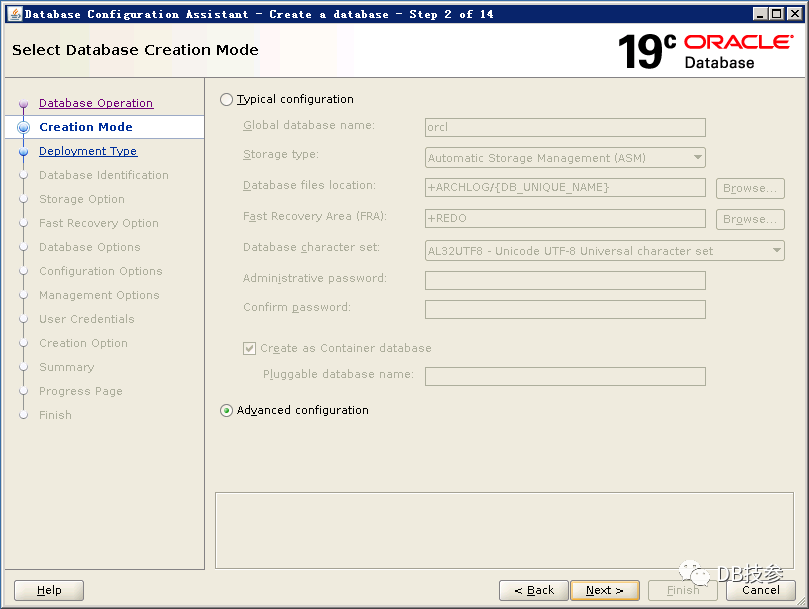 以Oracle用户执行dbca