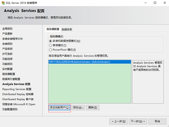 添加当前用户: 建议配置本机主要用户为SQL SERVER 管理员,因为SQLSERVER管理员可以免密直接登录数据库。