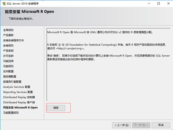 点击接受即可,然后会下载并在本机安装Microsoft R Open组件